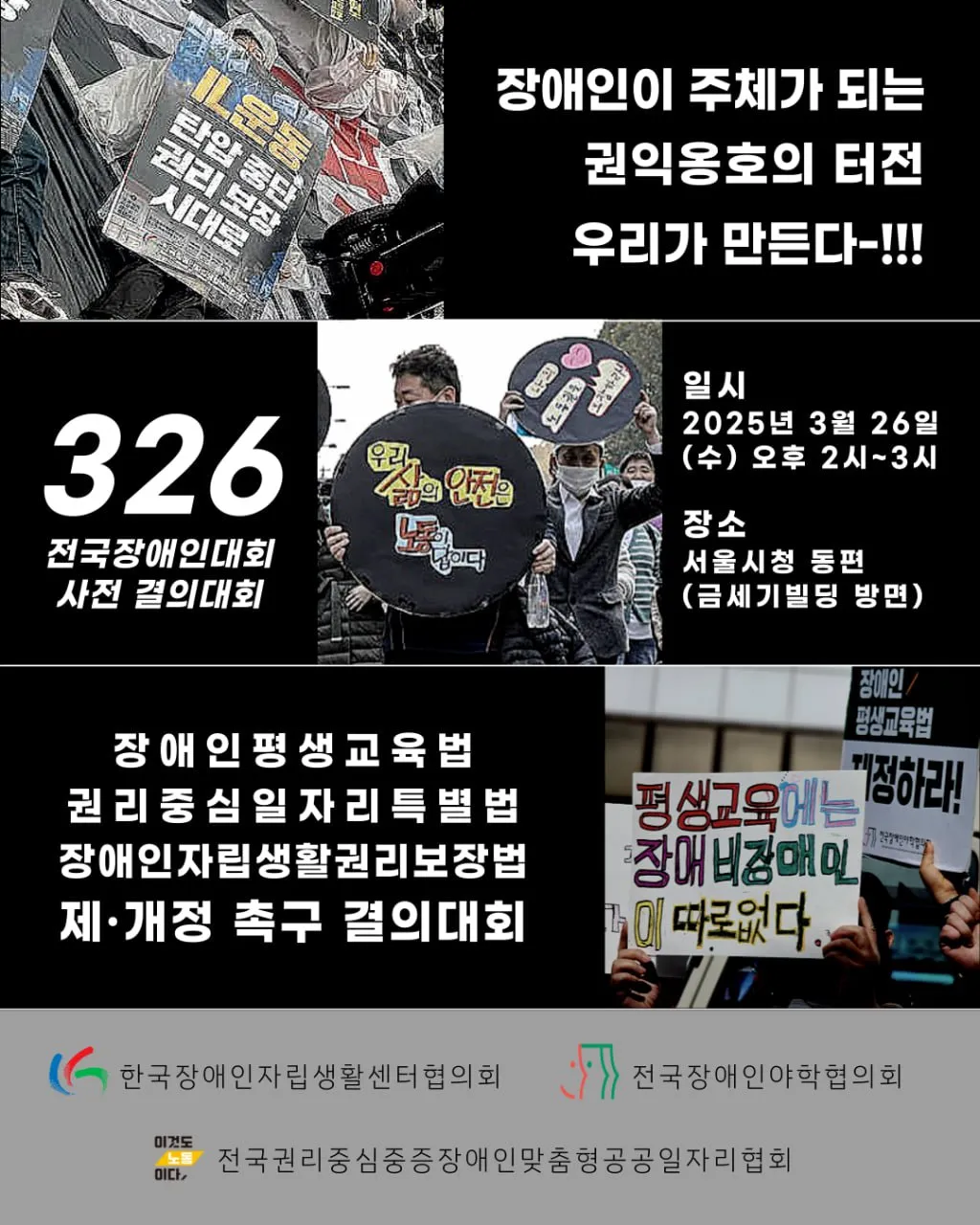 ■ 주관 : 전국권리중심중증장애인맞춤형공공일자리협회, 전국장애인야학협의회, 한국장애인자립생활센터협의회