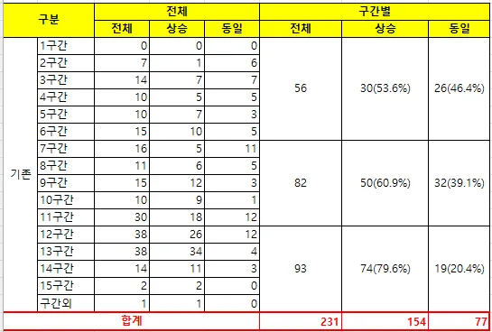 2-2) 231명 변경 신청 전후 구간별 분포 비율 변화
