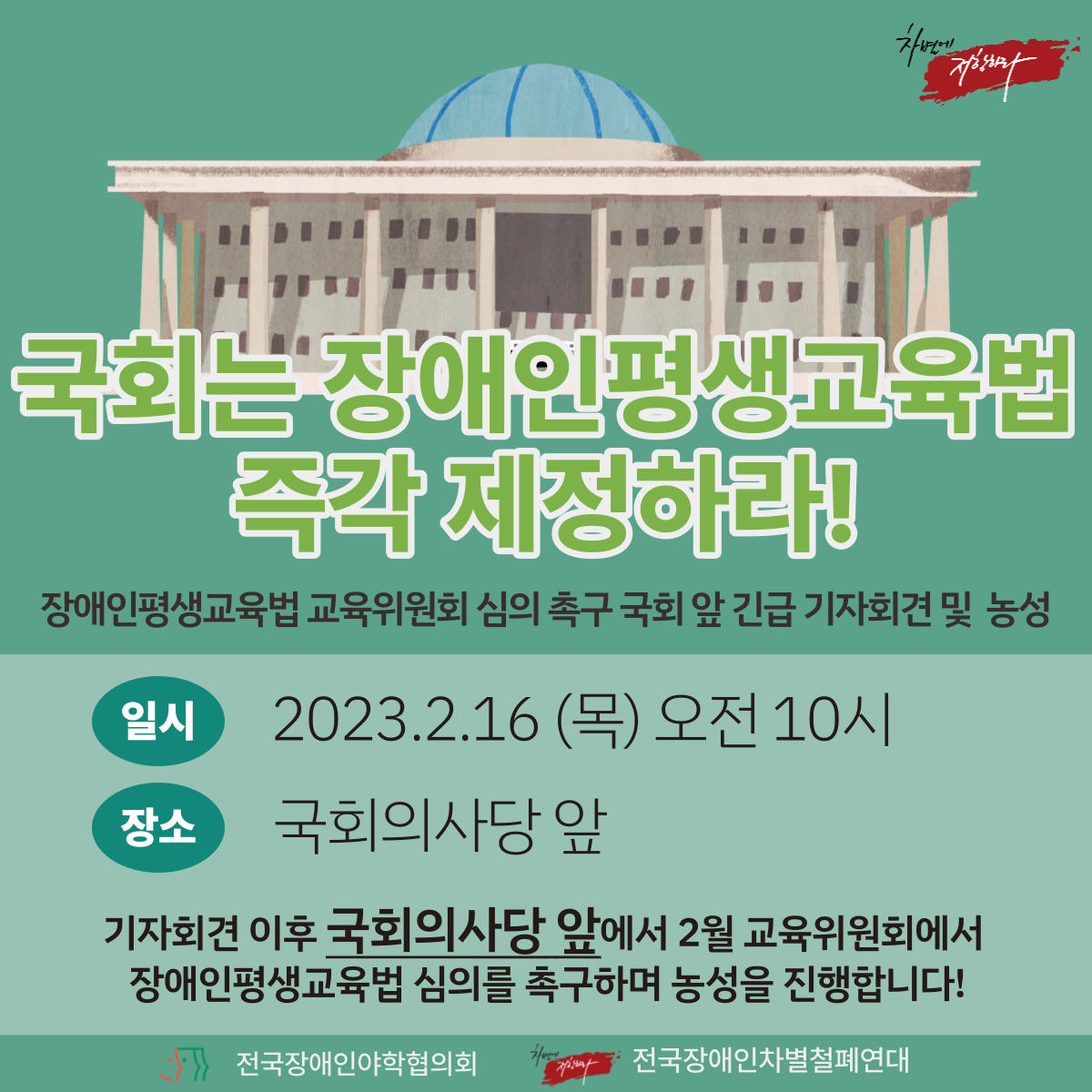 - 장애인평생교육법 국회 교육위원회 심의 촉구 국회 앞 긴급 기자회견